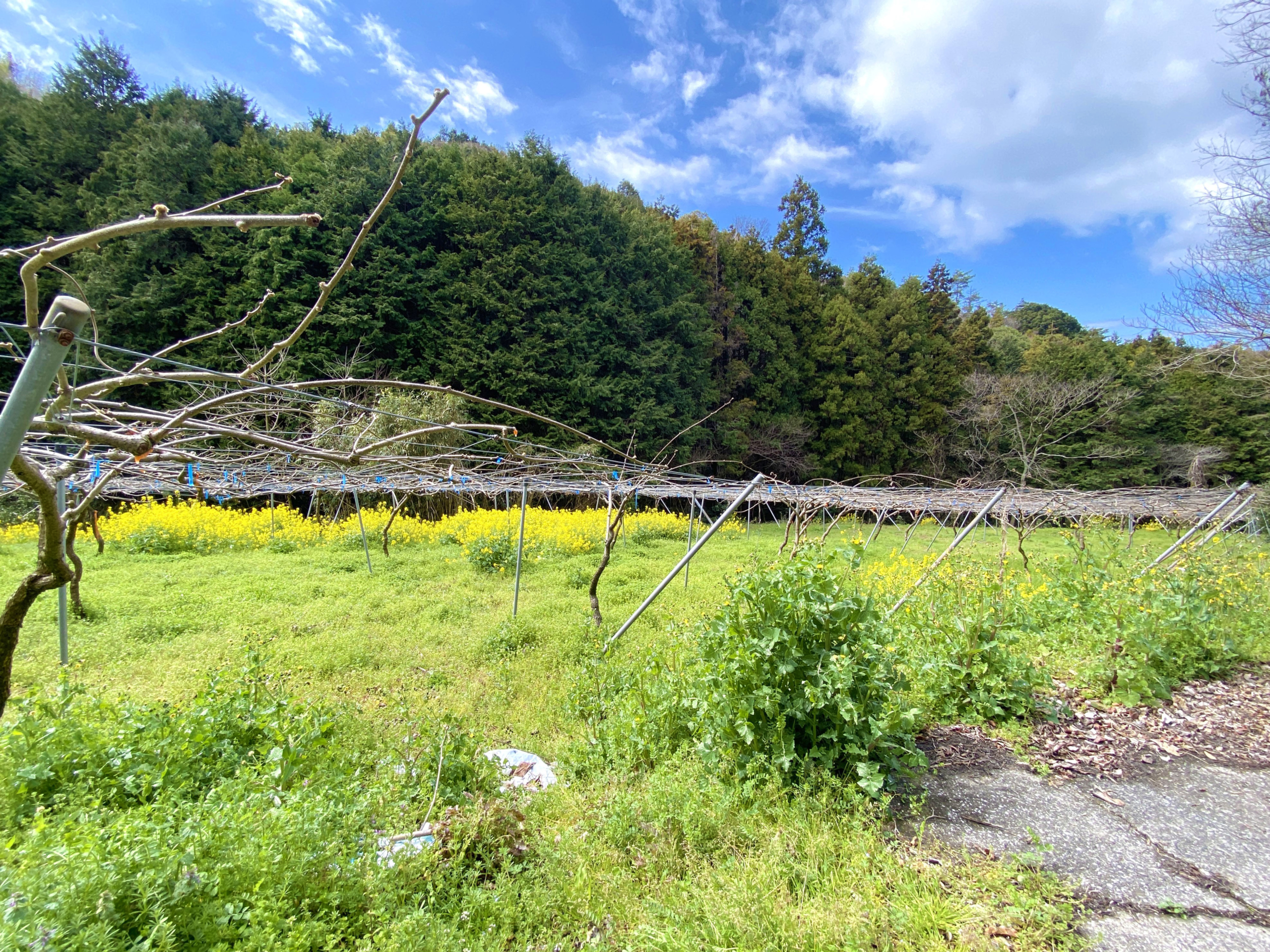 伊予市双海町にあるキウイ畑を「グリーンファーム日昇」と名付け、整備・管理を行いながら、地域特産であるキウイの栽培に取り組み始めました。この畑は、管理の継続が難しくなっていたキウイ畑を受け継いだもので、地域資源を活用していく取り組みの一つです。現在は、2026年11月頃の初収穫を目標に、栽培環境の整備と日々の管理を進めています。